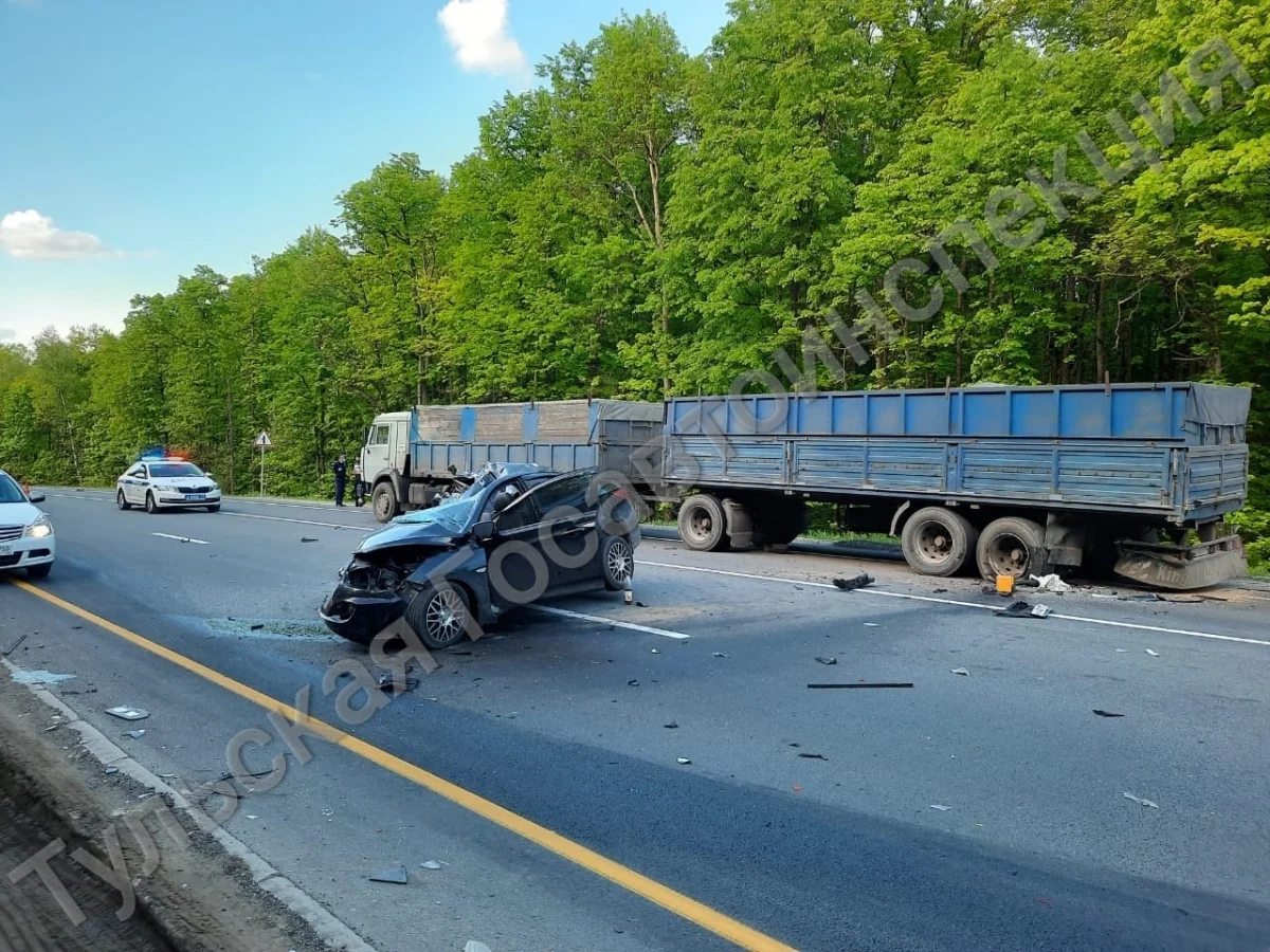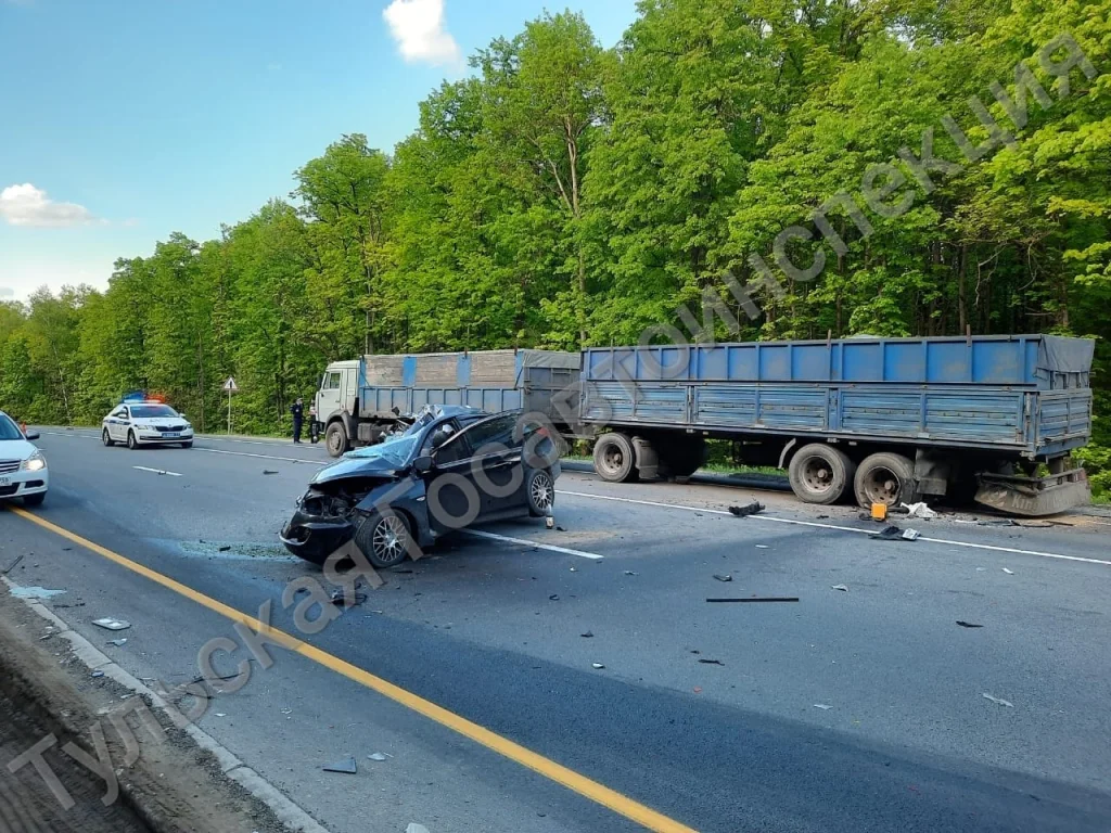 В Тульской области на подъезде к Ревякино легковушка разбилась о КАМАЗ