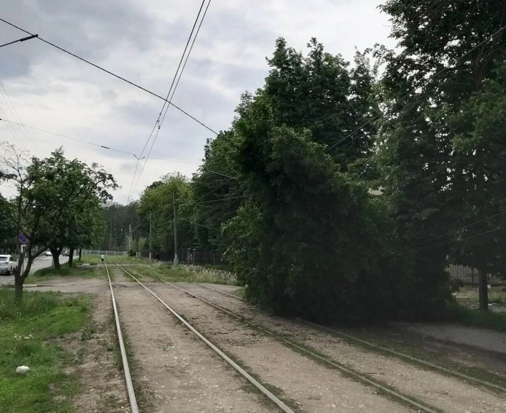 В центре Тулы в субботу из-за грозы на трамвайные пути упало дерево