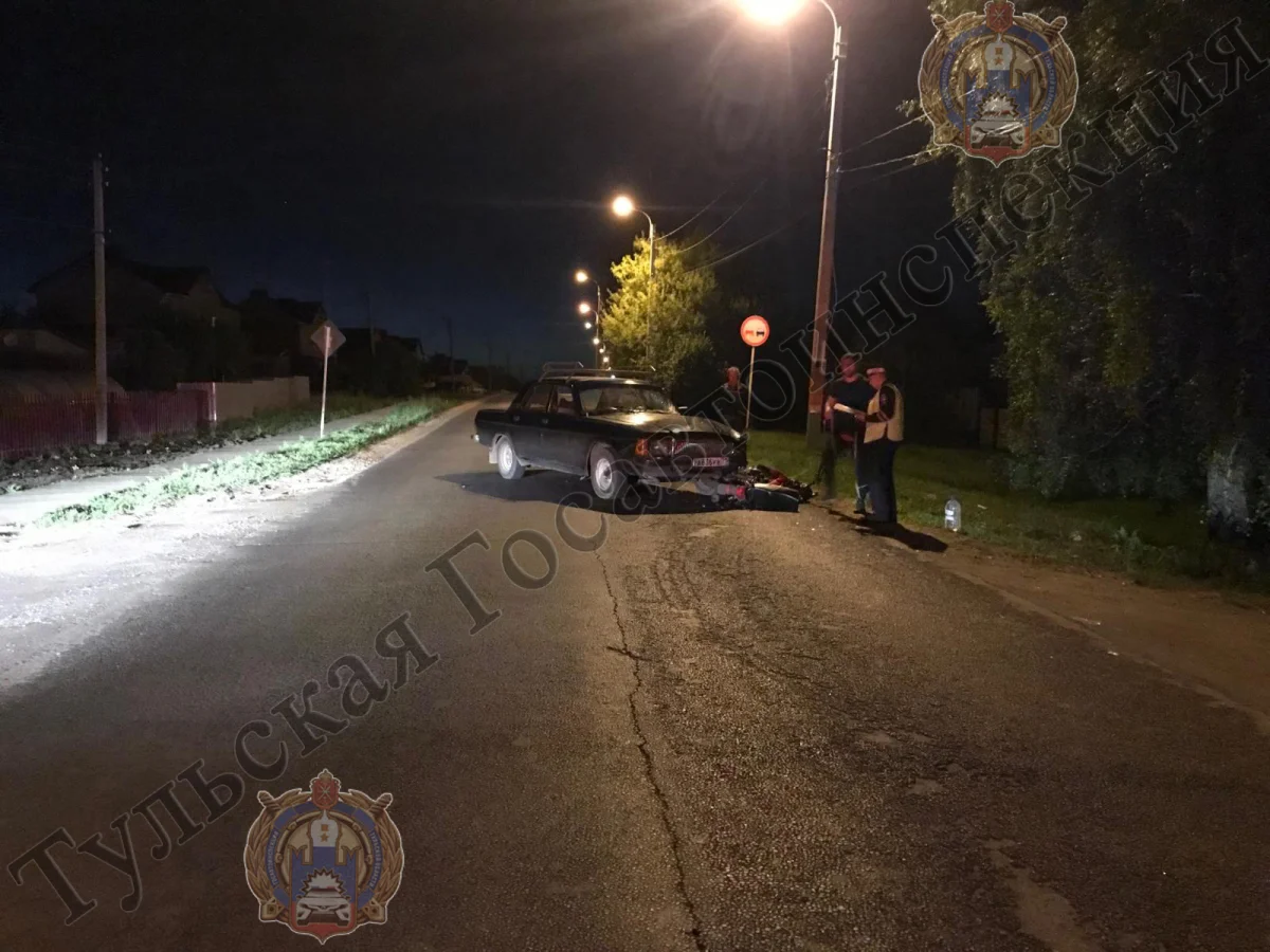В Щекинском районе пьяный подросток-мотоциклист с пассажиром попали под «Волгу»