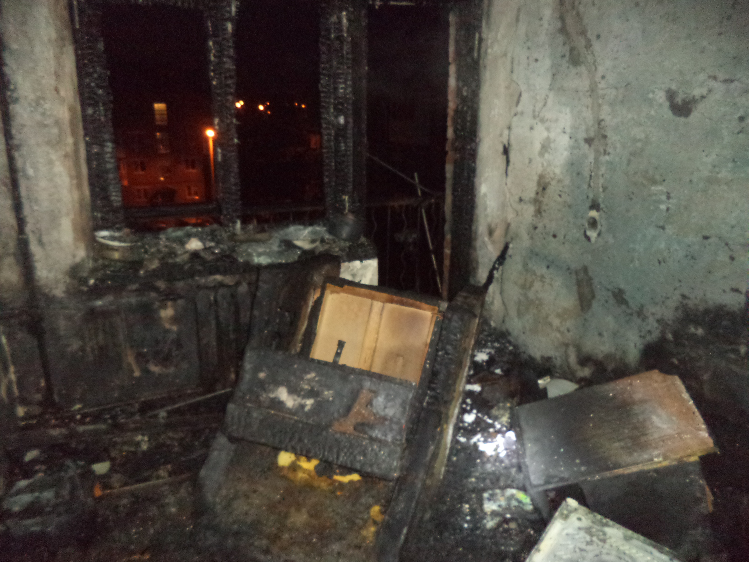 Пожар успел полностью уничтожить комнату. Его причина сейчас устанавливается.