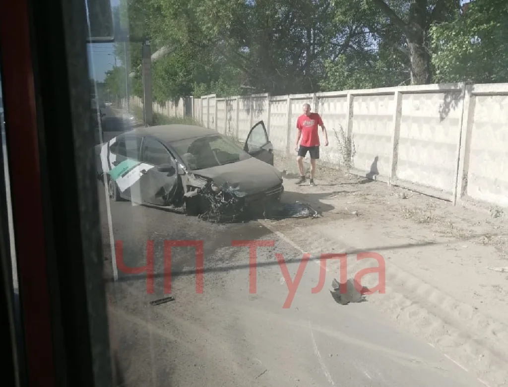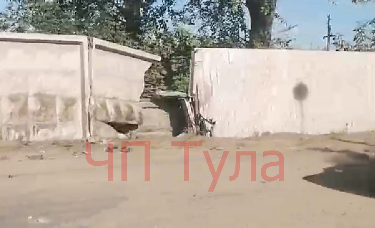 Очередное ДТП с машиной каршеринга (брендирование фирмы «Делимобиль») произошло в Туле утром 14 июля. Арендованный автомобиль на высокой скорости въехал в бетонный забор на улице Новотульской и проломил его. Фото с места аварии появились в соцсетях.