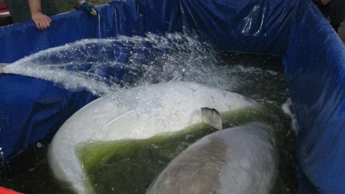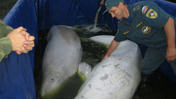 Сообщение с очень необычной просьбой о помощи поступило 13 августа в пожарную часть Узловой Тульской области. Звонивший попросил помощи для двух молодых белух.