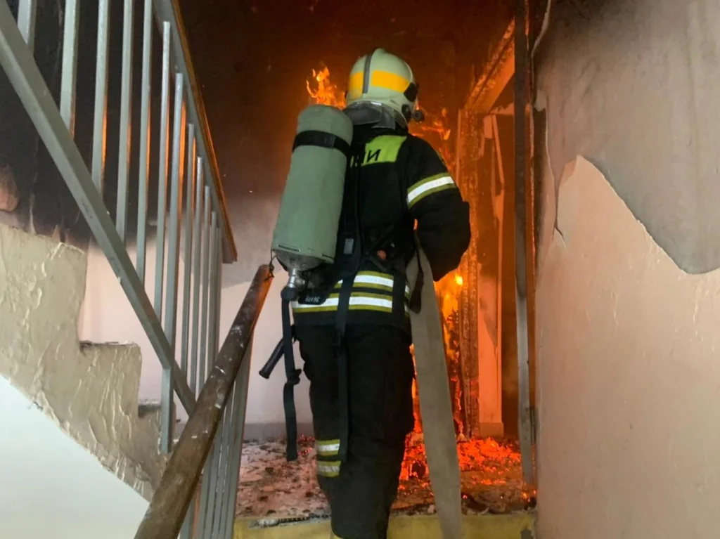 В результате происшествия на лестничной клетке сгорели кресло и стулья, оплавились два электросчетчика и два пластиковых окна, в подъезде закопчены стены и потолок.