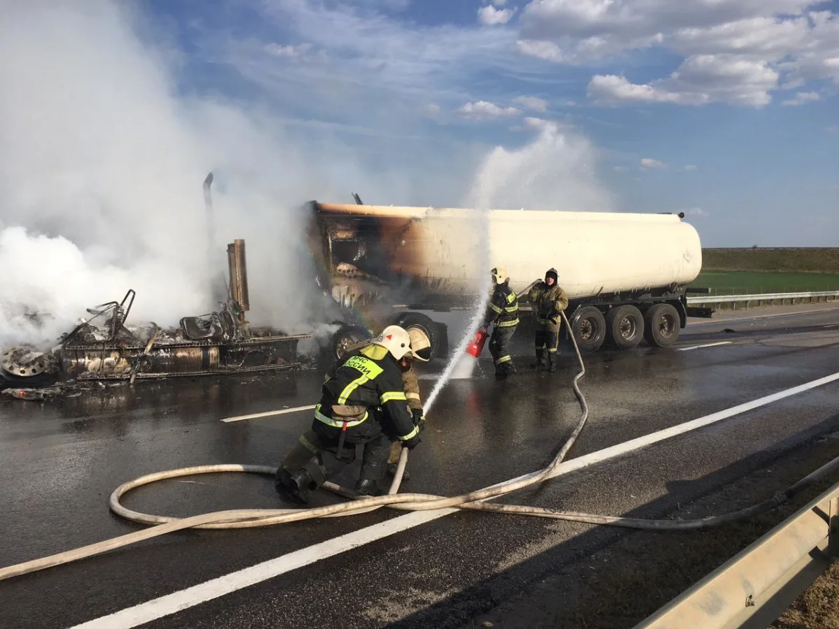 17 августа в 16:48 в службу спасения поступило сообщение о ДТП, которое произошло на 305 км трассы М-4 «Дон». Там столкнулись три автомобиля - «БМВ Х6», «Форд Фокус» и пустой бензовоз-автоцистерна «Ман». После столкновения бензовоз загорелся.