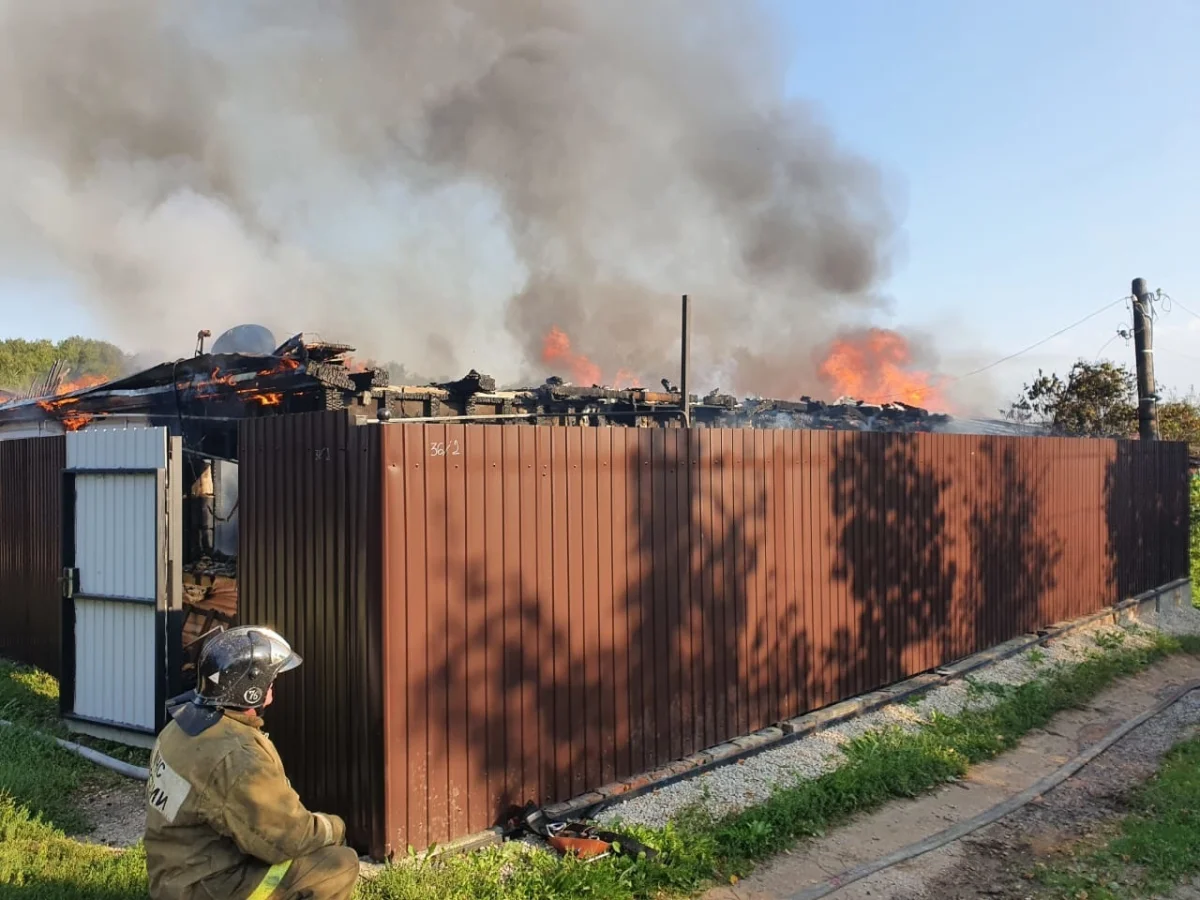 В доме в результате пожара полностью сгорела и обрушилась кровля, здание выгорело по всей площади.