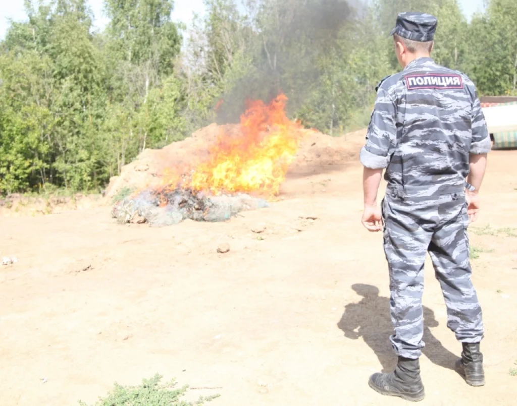 В Тульской области полицейские сожгли браконьерские рыболовные сети