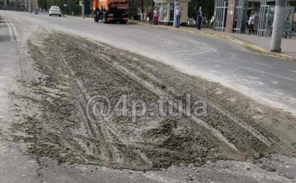 В Туле неизвестный водитель разлил бетон на проспекте Ленина