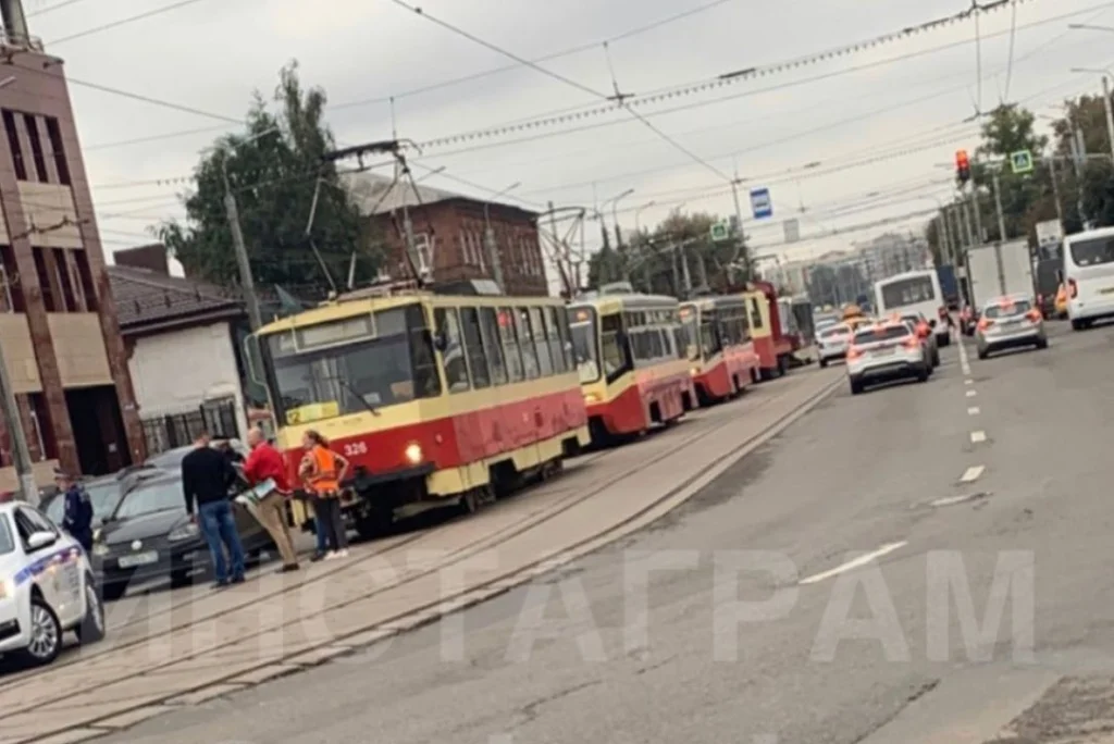 В Туле на улице Дзержинского столкнулись «Делимобиль» и трамвай
