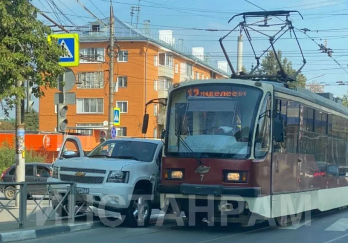 Утром 29 августа на перекрестке улиц Ф. Энгельса и Первомайская в Туле столкнулись трамвай № 12 и внедорожник «Шевроле Тахо». Внедорожник после столкновения наполовину вылетел с дороги, врезался в металлическое ограждение и смял несколько его секций.