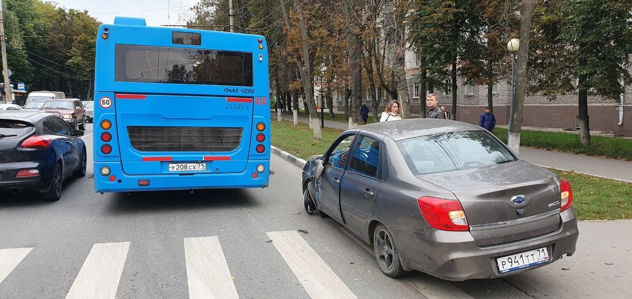 В Туле у Центрального парка столкнулись автобус и Datsun