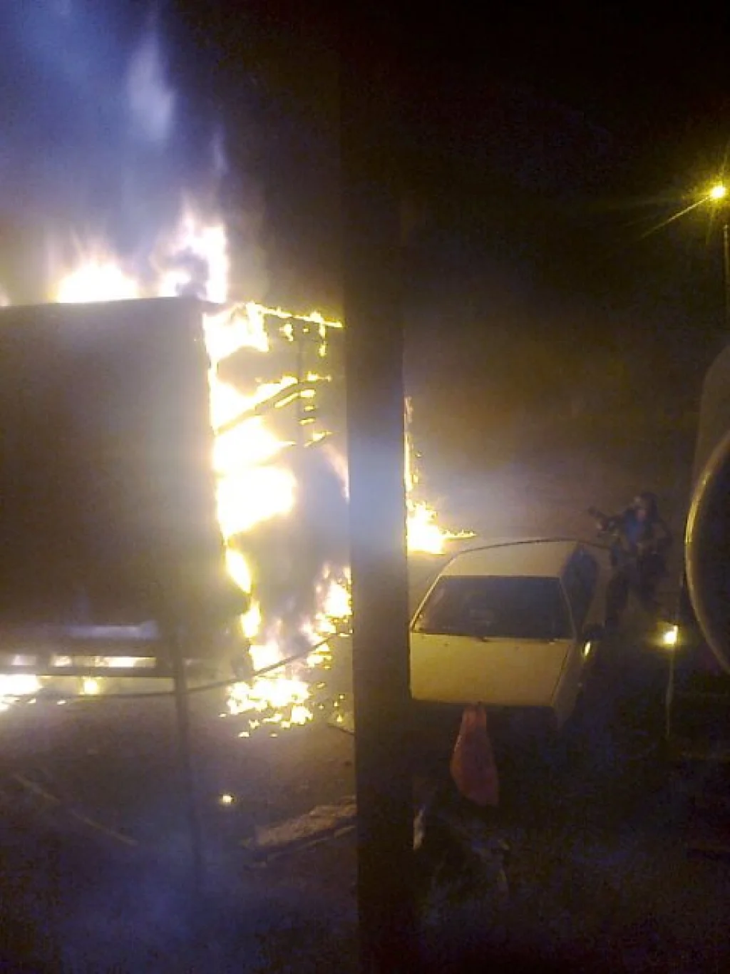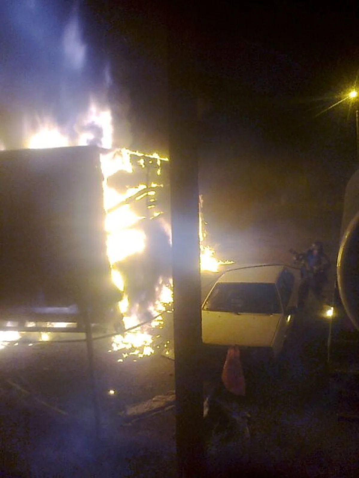 Выехавший на место происшествия пожарный расчет прибыл через 15 минут. К этому моменту грузовая машина горела открытым огнем. Справиться с пламенем огнеборцам удалось в 03:23. К счастью из людей никто не пострадал.