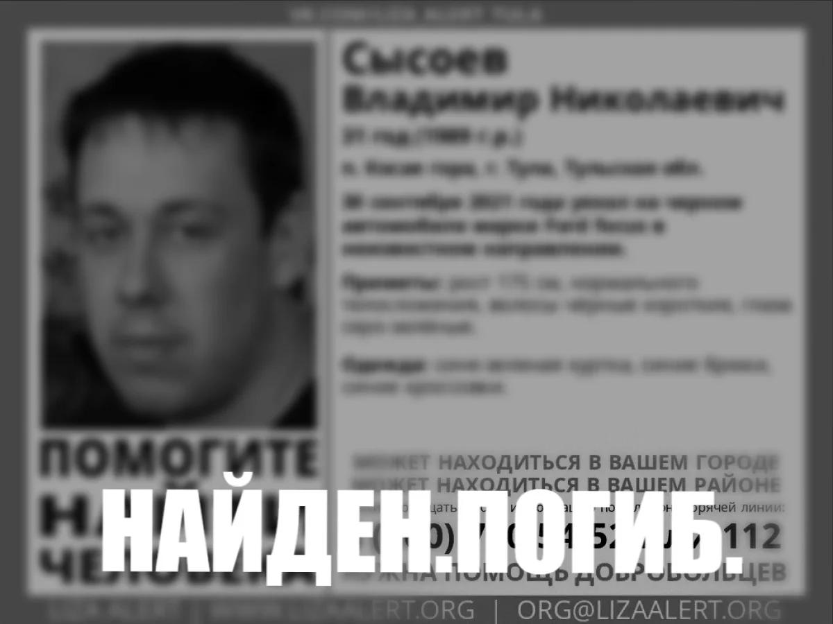 Стали известны подробности происшедшего с 31-летним Владимиром Сысоевым. Напомним, в Тульской области 5 дней его искали волонтеры и полиция после того, как 30 сентября он уехал на черном Ford Focus в неизвестном направлении. А в воскресенье, 3 октября, стало известно о том, что туляк найден погибшим.