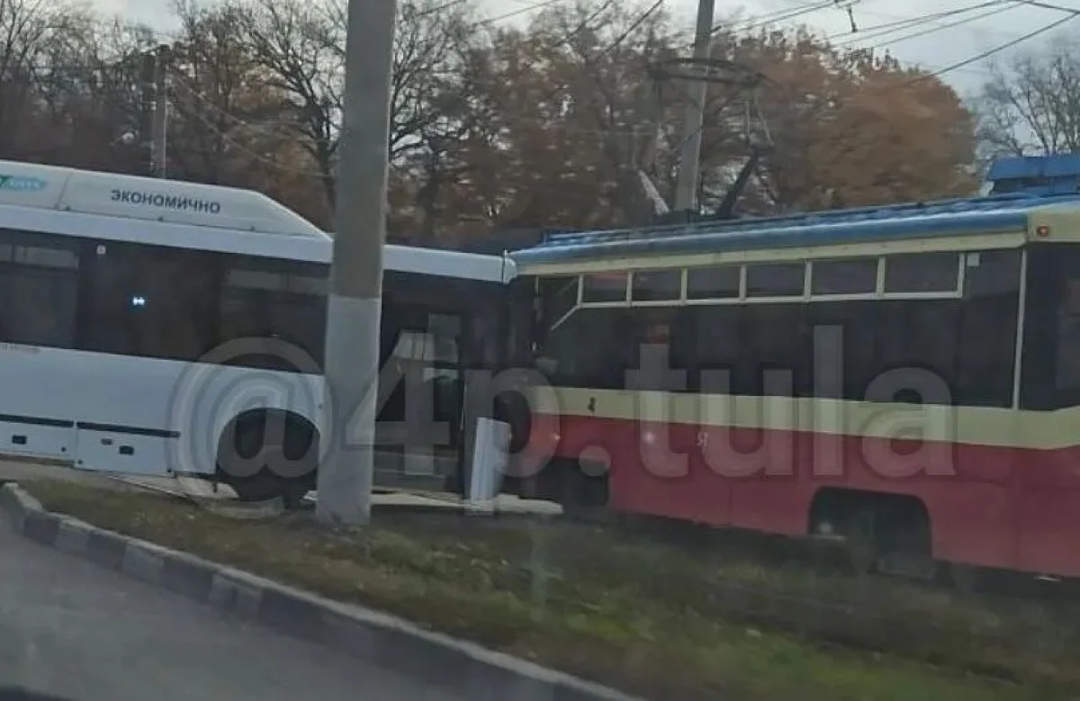Трамвай и автобус столкнулись в Туле на улице Щегловская Засека: видео