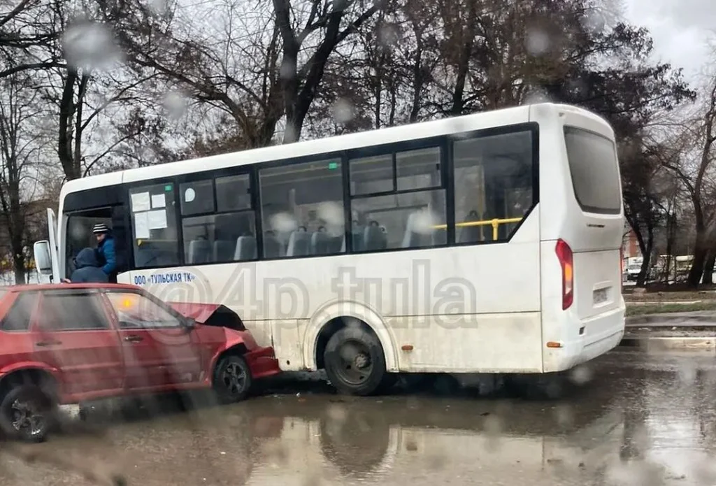 В Туле ВАЗ протаранил пассажирский автобус: водитель легковушки госпитализирован