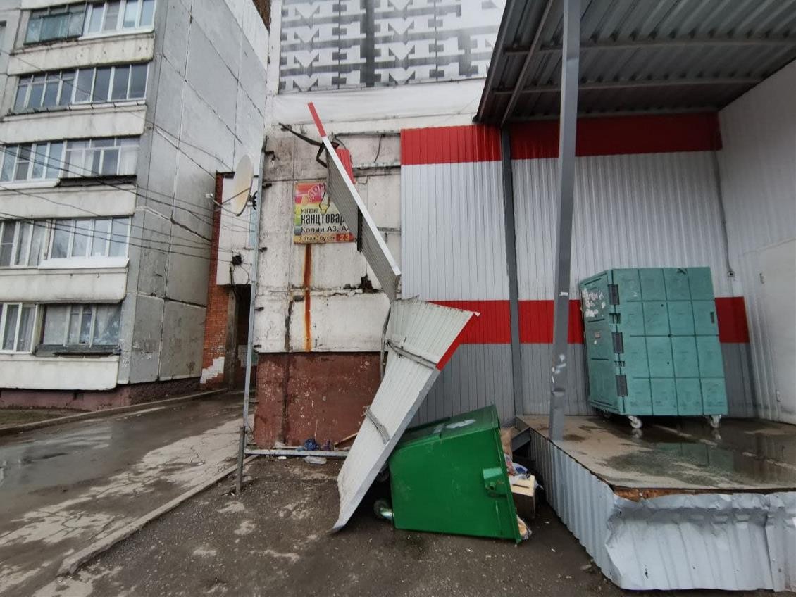 Кроме того, с одного из магазинов «Магнит» верет сорваш металлические листы декоративной обшивки, а на улице Школьной, 17, ветер унес половину крытой рубероидом крыши.