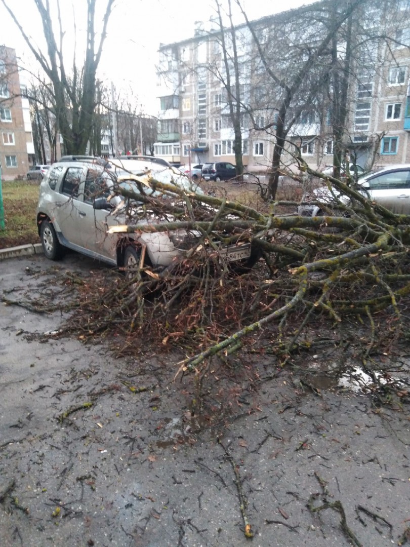 Как мы писали ранее, в Туле ветер повалил несколько деревьев и столбы линии электропередач, жители Новомосковска также поделились последствиями штромового ветра: так, в одном из дворов, на автомобиль упало дерево, выломанное ветром из земли, а на улице Орджоникидзе, 6/33 перевернуло остановочный павильон.
