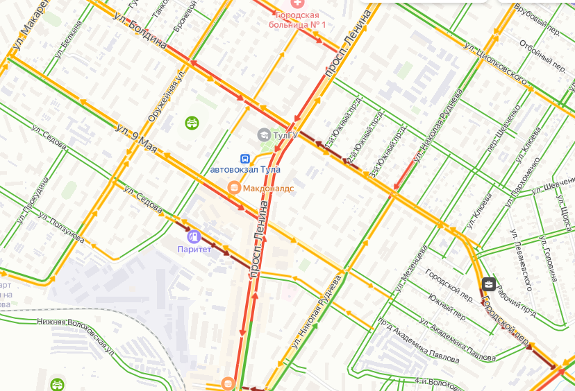 Днем 10 декабря, около 15:00 на пересечении проспекта Ленина и улицы 9 Мая в Туле произошло ДТП с участием грузовика и легкового автомобиля «Дэу». В результате аварии и того, что участники столкновения заняли несколько полос, на проспекте Ленина собралась пробка.