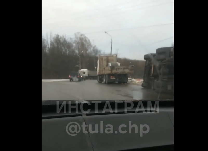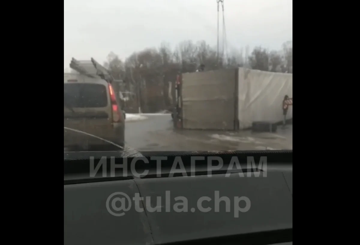 В поселке Иншинский в Туле на обочину опрокинулась фура