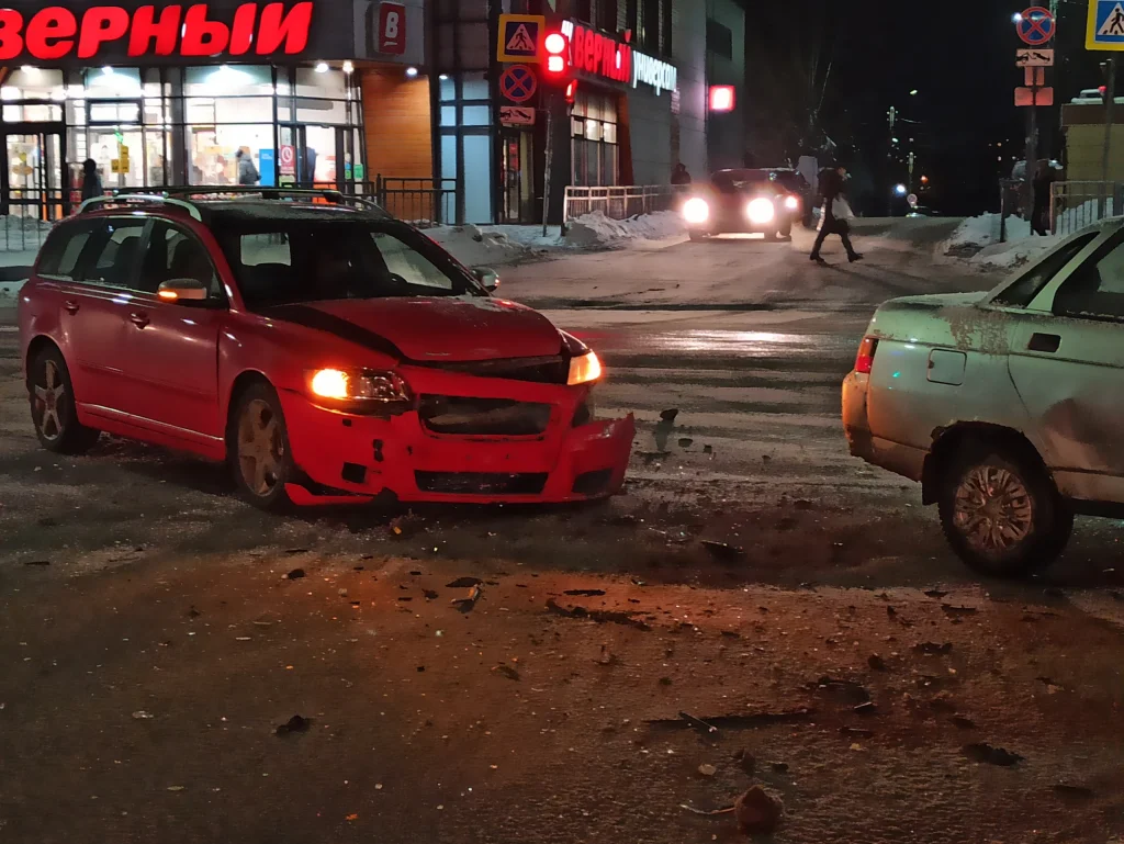 в туле на пересечении улиц Пузакова и Демидовской Volvo протаранил ВАЗ