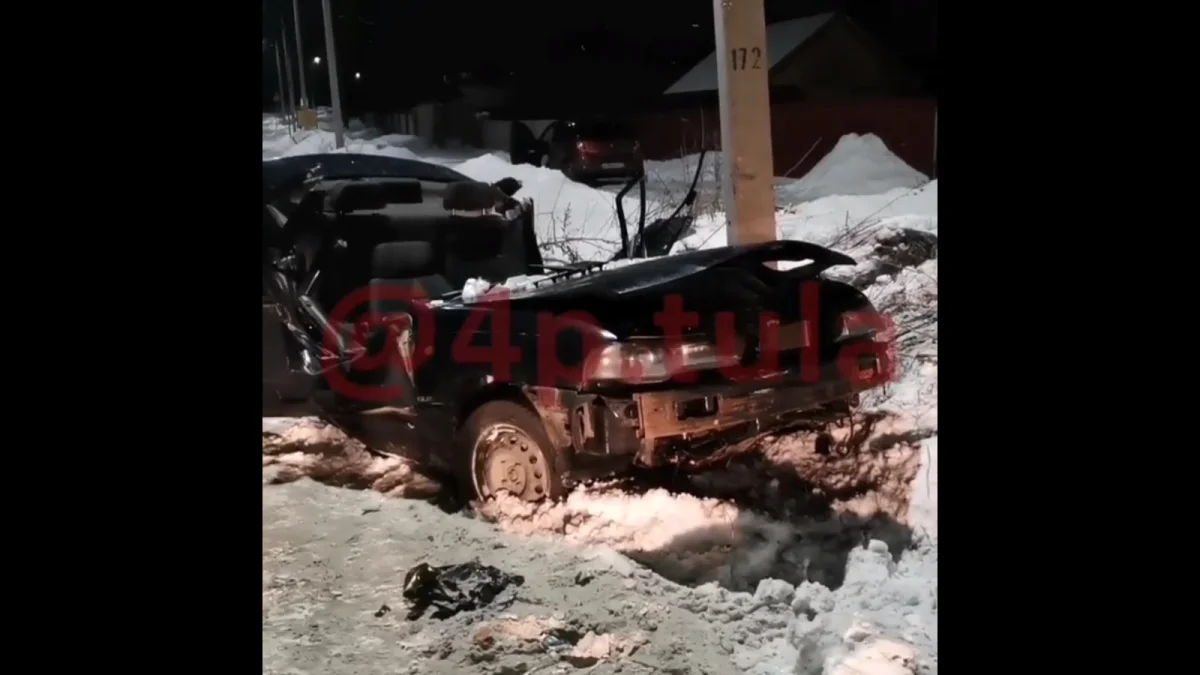 В Туле 20-летнего водителя, врезавшегося в опору ЛЭП на Daewoo, доставали из машины через крышу