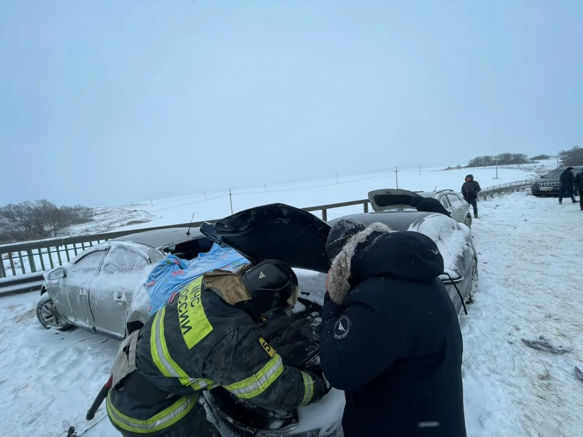 По предварительной информации, столкнулись 43 автомобиля, 11 пострадавших, из них двое детей, одному из которых 1,5 года. Некоторых пострадавших пришлось извлекать с использованием спецоборудования «Спрут».