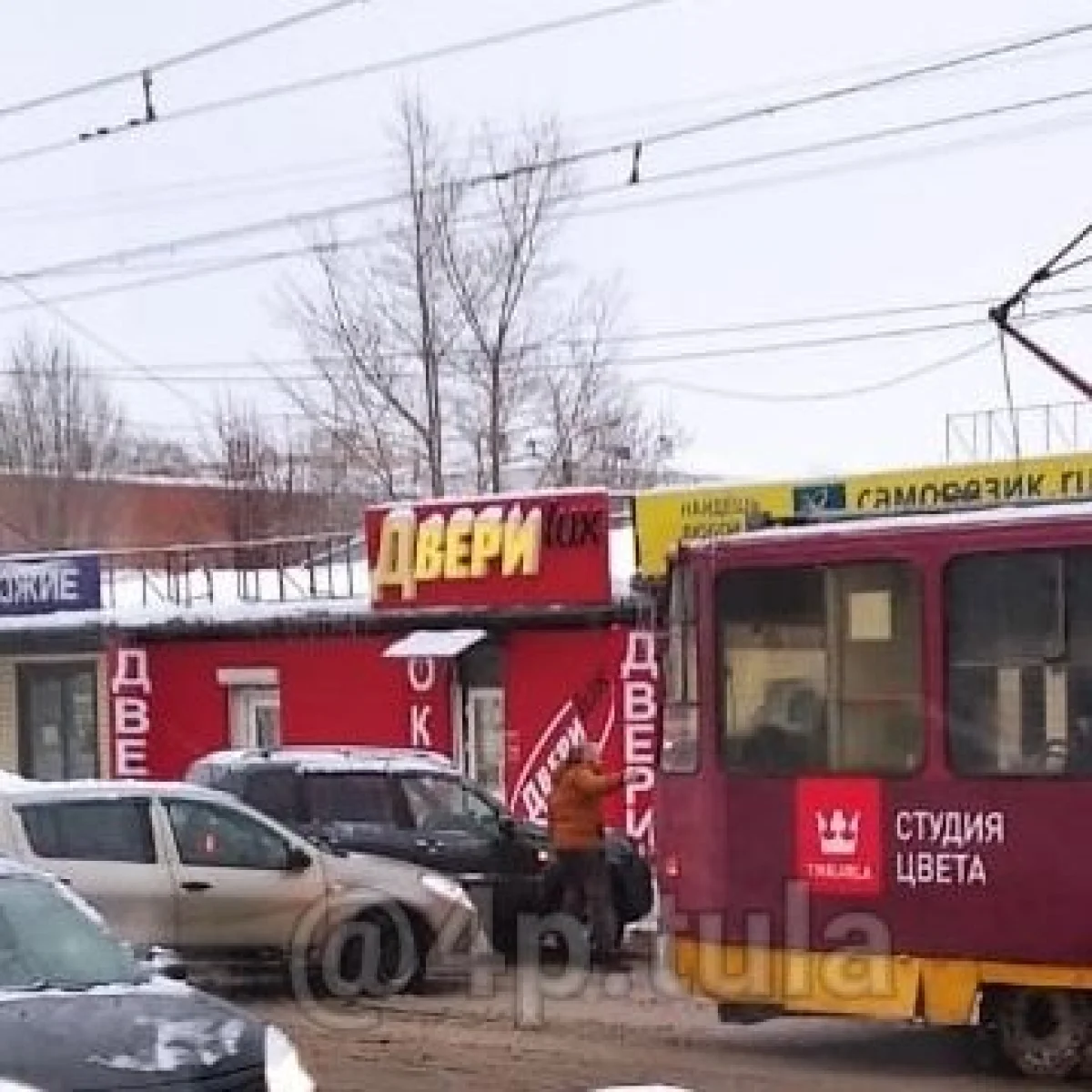 В Туле на улице Оборонной столкнувшиеся легковушки остановили движение трамваев