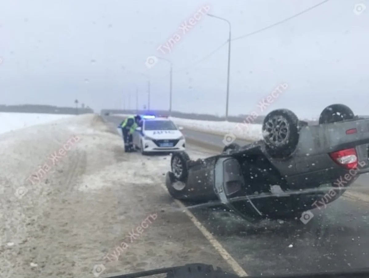 В Тульской области на трассе М-2 Lada Priora опрокинулась на крышу