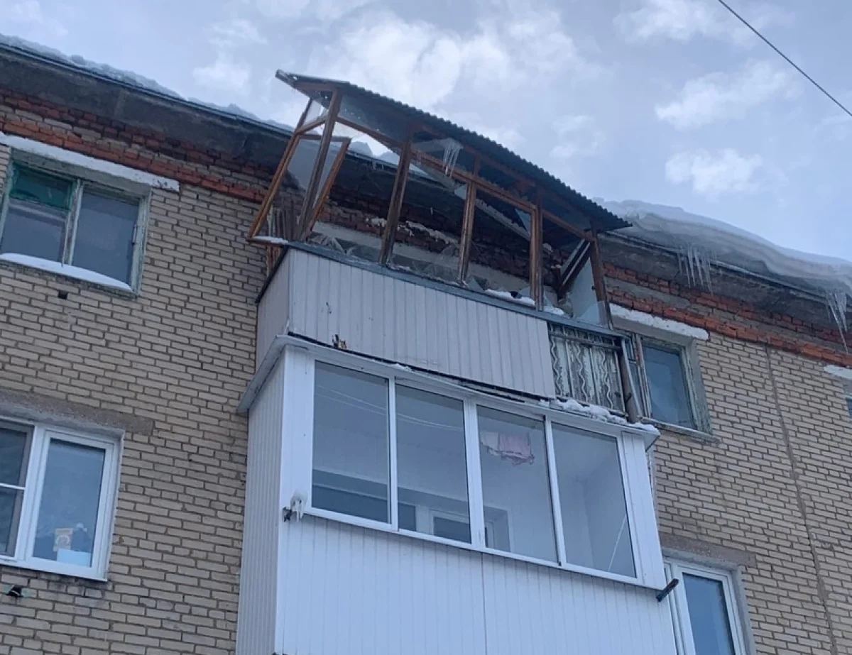 В Новомосковске УК сломала балкон, сбивая наросшую сосульку