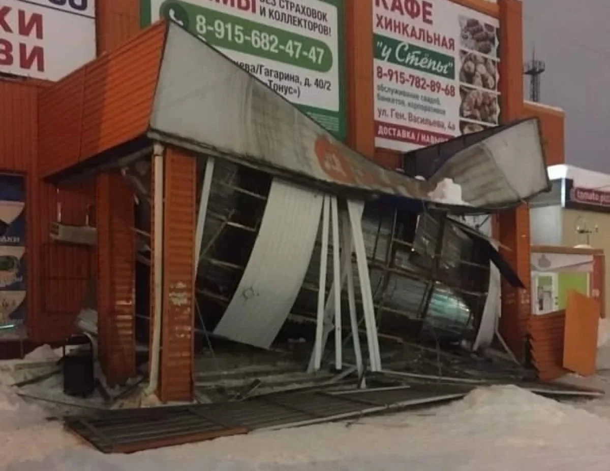 В Узловой обрушился козырек-тамбур на входе в супермаркет «Дикси»