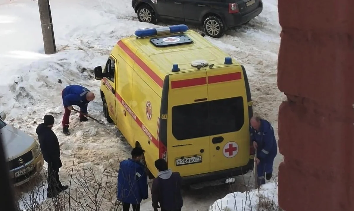 В Новомосковске скорая помощь завязла в снегу и час не могла выехать из двора