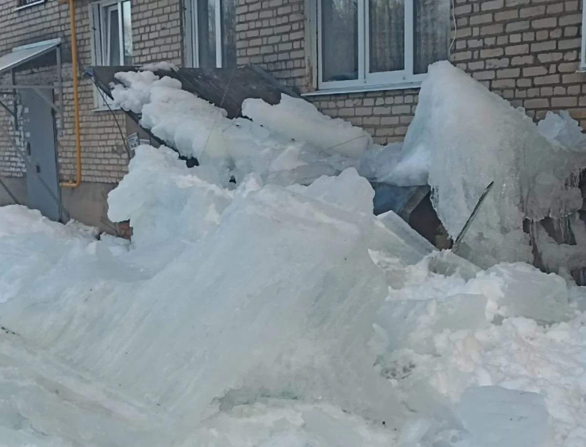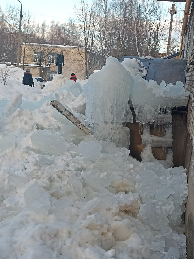 В Щекино Тульской области на улице Емельянова, 10, с крыши дома обвалилась целая глыба льда, об этом в соцсетях сообщили очевидцы. Падая, льдина зацепила немного балконы, повредив их, а главное, проломила крышу над входом в подвал. По словам очевидцев, подвал во льду, туда уже проникает вода.