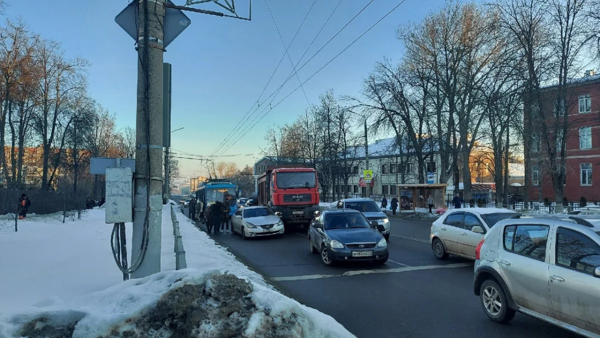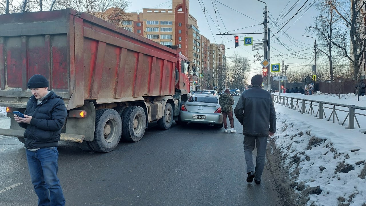 В Туле на улице Дм. Ульянова столкнулись грузовой самосвал «МАН» и легковая «Тойота»: образовалась пробка
