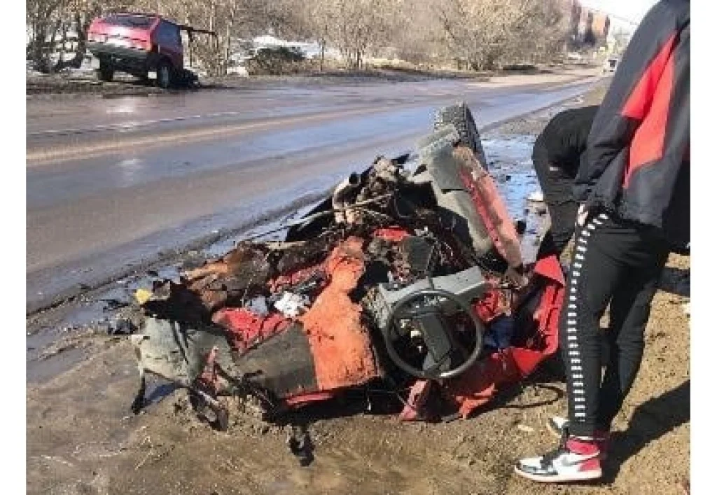 В результате автомобиль ВАЗ практически разорвало пополам, а водитель скончался на месте.