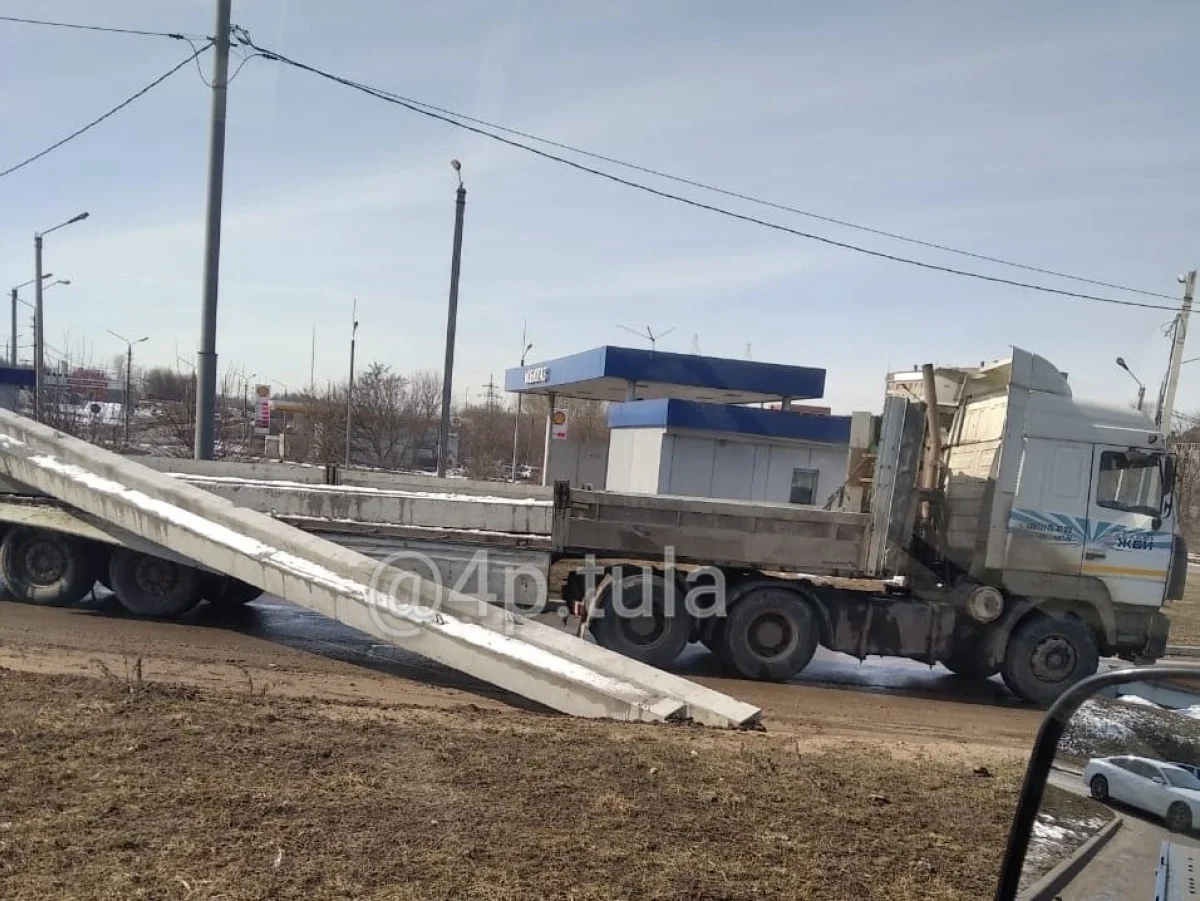 В Туле на улице Рязанской грузовик «выронил» бетонные столбы на обочину