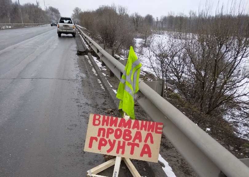 5 апреля в Туле на Щекинском шоссе снова обнаружили провал — часть асфальта провалилась на дороге рядом с барьерным ограждением из-за размытия грунта, о неприятной находке в социальных сетях сообщили очевидцы. Также они рассказали, что на месте провала уже кто-тоу становил самодельную предупреждающую табличку.
