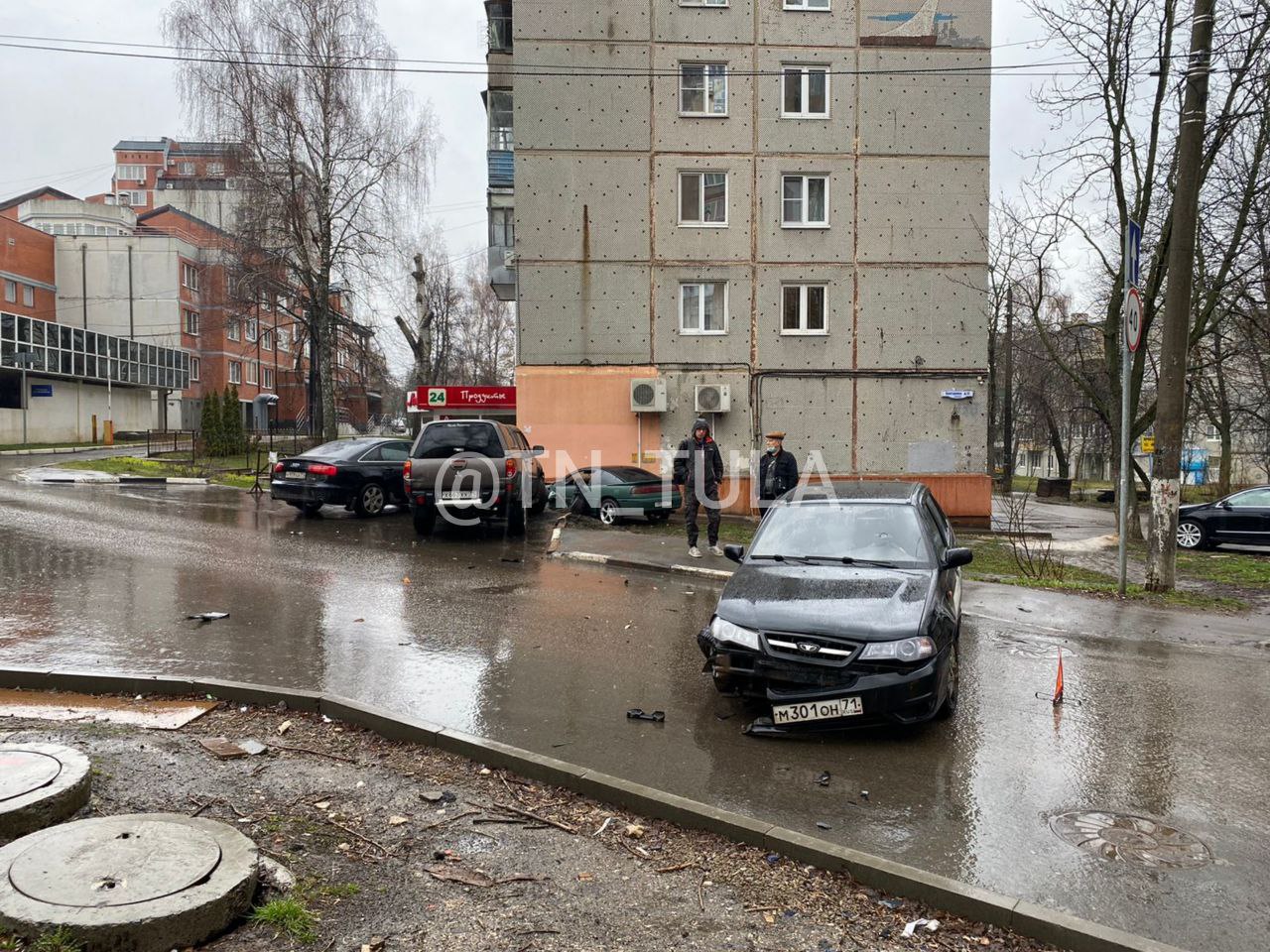 В центре Тулы произошло жесткое тройное ДТП: одна из машин врезалась в угол дома