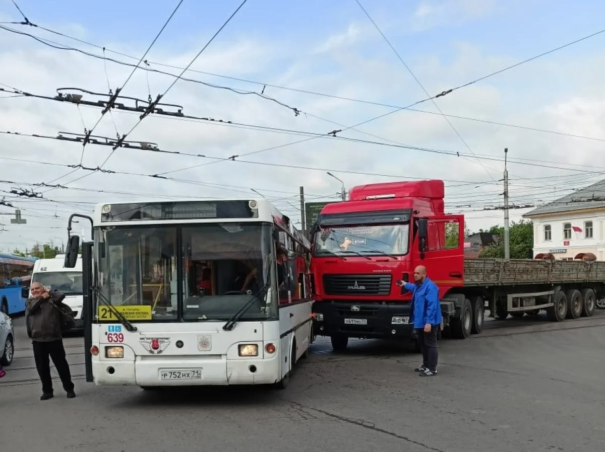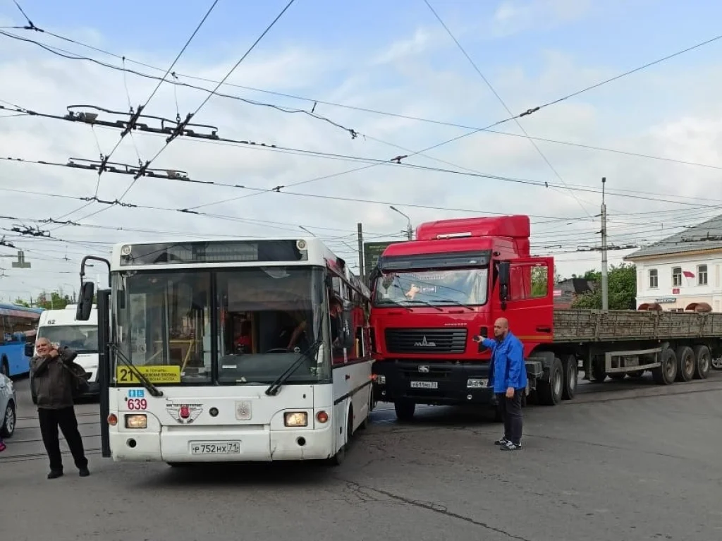 В Туле на улице Пролетарской столкнулись длинномер и пассажирский автобус