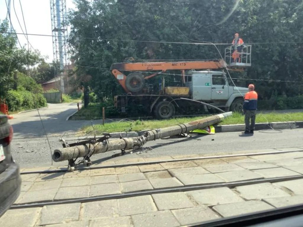 Судя по информации, размещенной в соцсетях очевидцами, опора линии электропередач задела проезжавший трамвай.