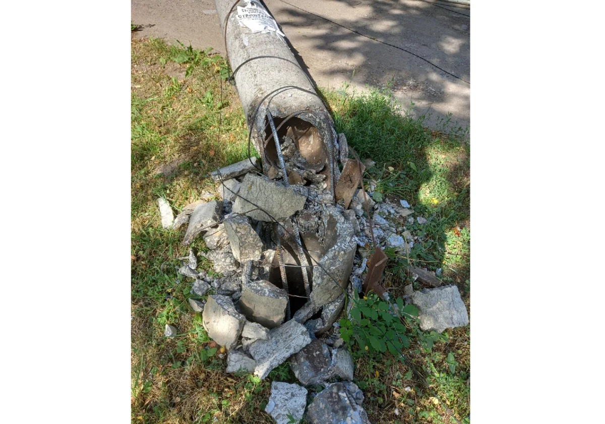 Опора электропередач рухнула в одном из дворов по улице Грибоедова в поселке Западный.