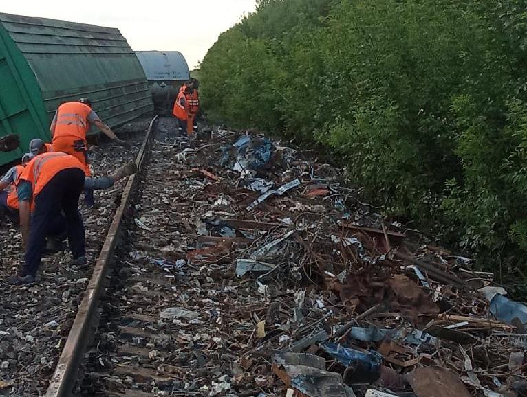 В Узловском районе Тульской области 12 вагонов сошли с рельсов, погиб человек: возбуждено уголовное дело