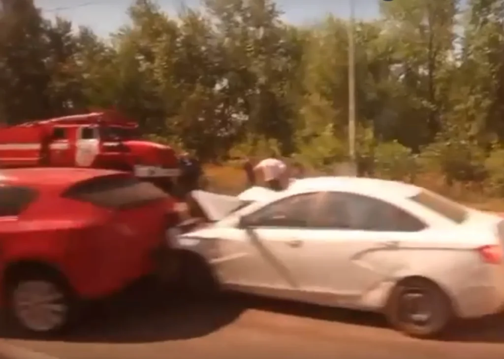 «Лада Веста» с прицепом первоначально столкнула в кювет попутную Mazda Demio, а дальше протаранила Opel Astra, «ВАЗ-21074» и Subaru Forester.