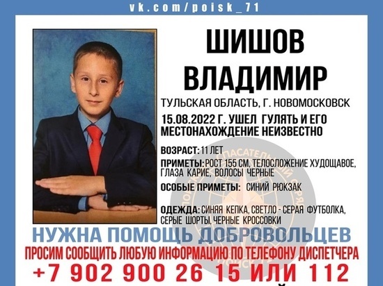 В Новомосковске пропал 11-летний мальчик. Об этом сообщает отряд «Поиск 71».