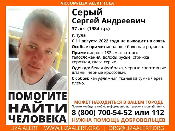 Серый Сергей Андреевич ушел из дома 11 августа и пропал.