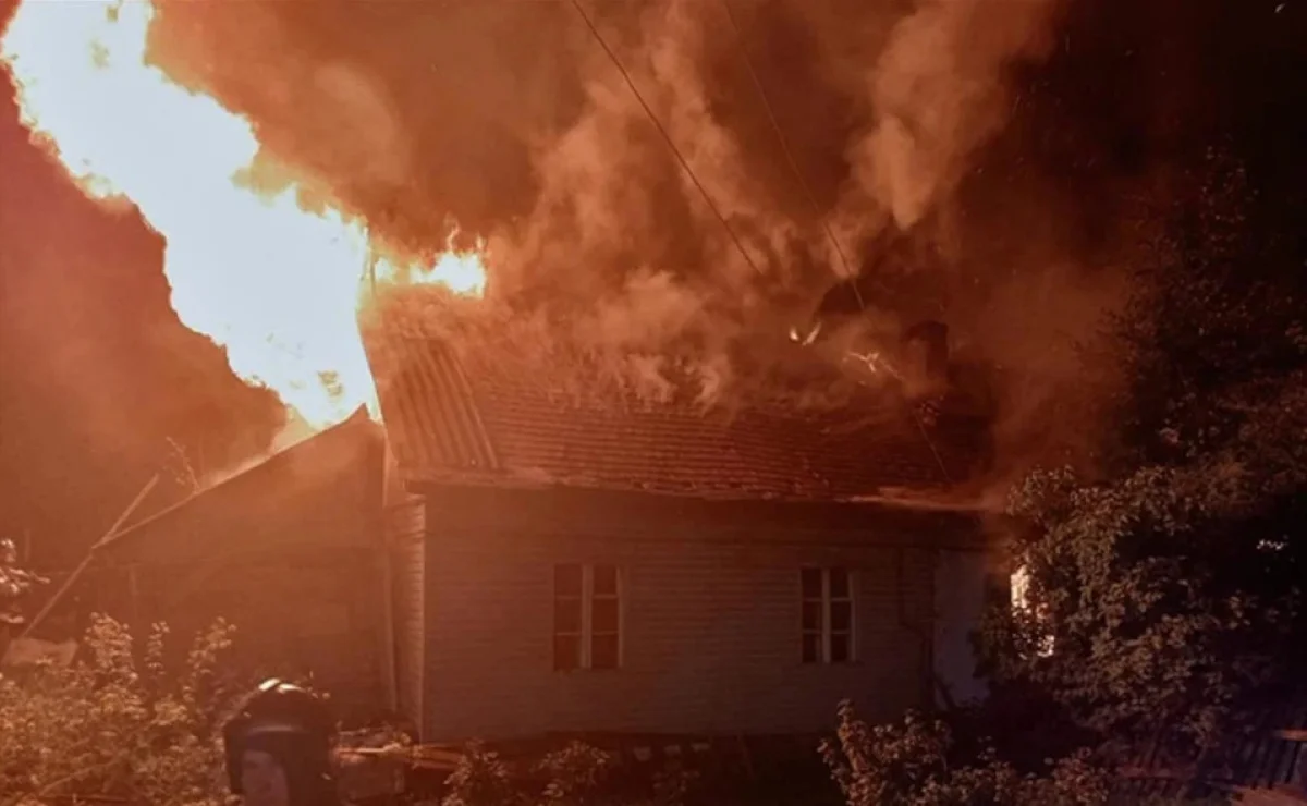 В результате в здании сгорела и обрушилась кровля двух частей дома из трех, у третьей части обгорела обрешетка, сам дом выгорел внутри по всей площади.