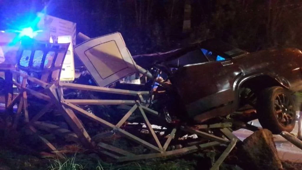 За рулем авто находился 20-летний молодой человек. Он не справился с управлением и на высокой скорости въехал в ограждение. От удара авто едва не раскололось на две части.
