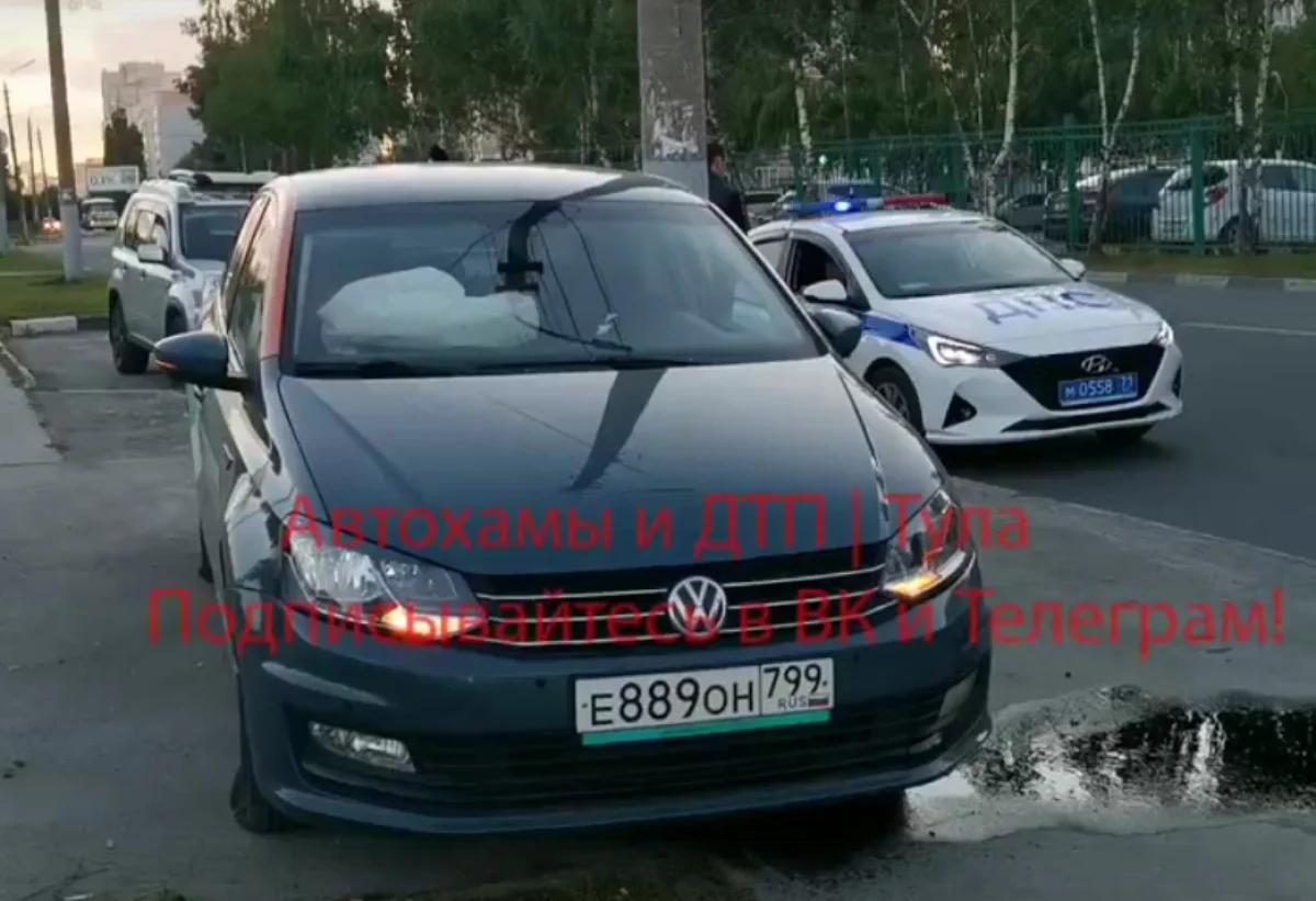 В тульских Глушанках водитель каршеринга выскочил на тротуар, лишившись трех колес