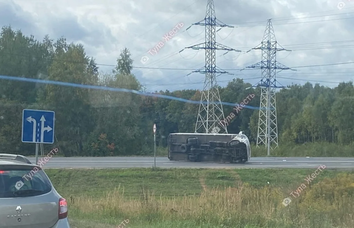 В Туле на Одоевском шоссе перевернулся фургон