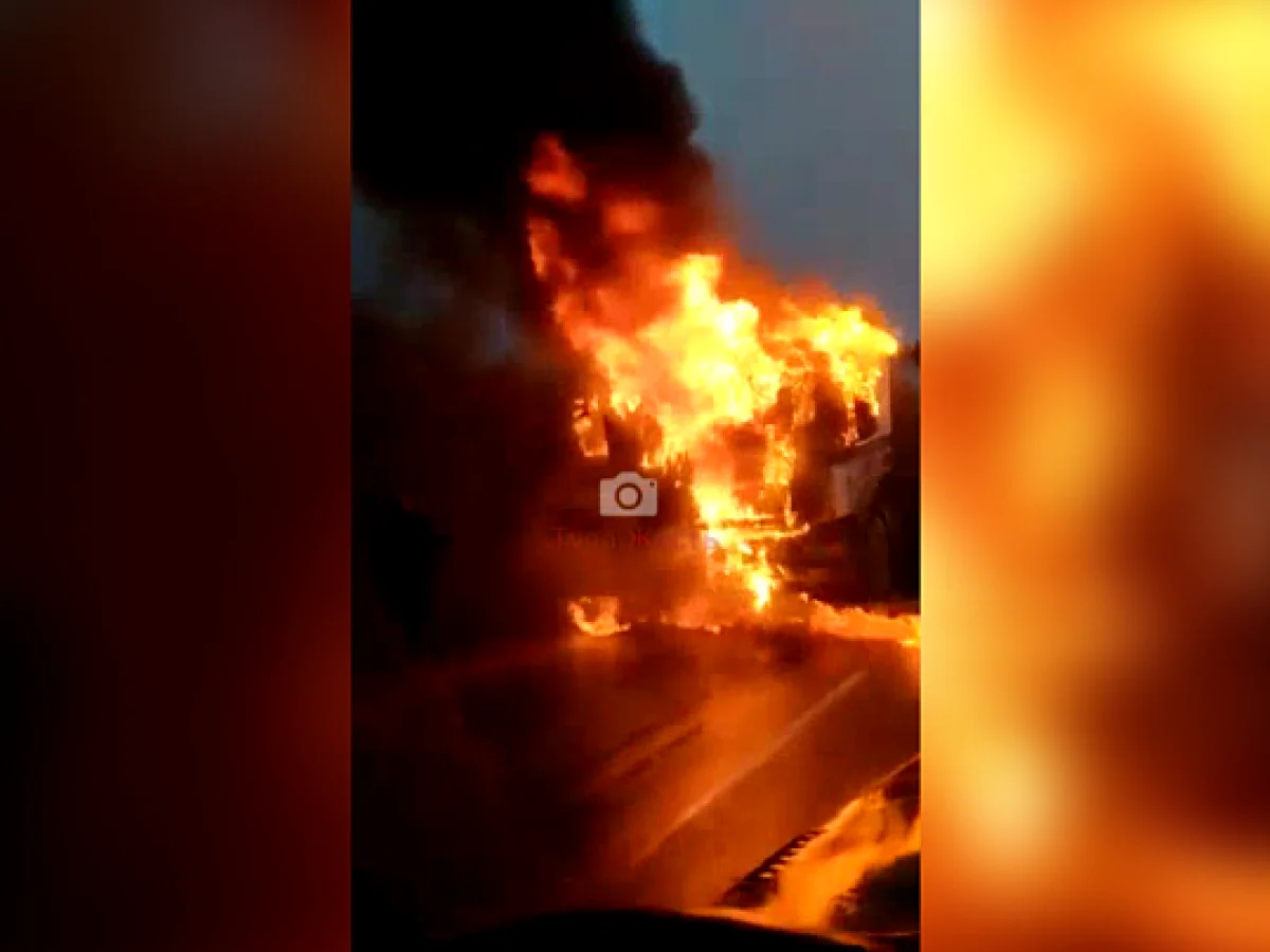 В Дубенском районе вечером 18 сентября сгорела фура Man. Происшествие попало в кадр видеокамеры очевидцев. На записи видно, что у припаркованного грузовика горела кабина.