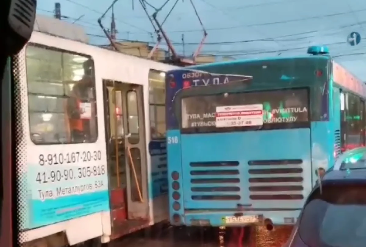 Столкновение между автобусом и трамваем в центре Тулы собрало семибальные пробки
