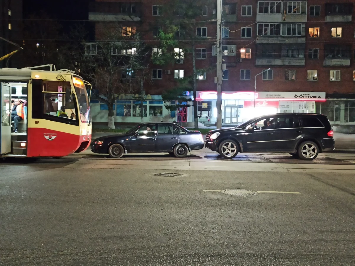 Одна из машин двигалась по трамвайным путям, вторая попыталась перестроиться перед ней из полосы в полосу.